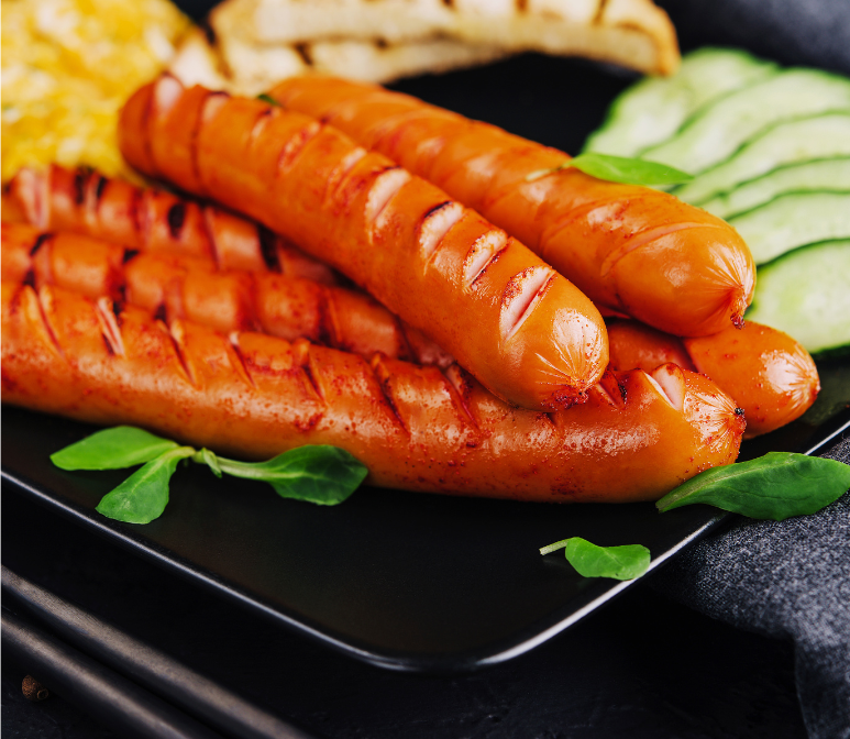 ผลิตภัณฑ์เนื้อสัตว์ : เพิ่มความยืดหยุ่นและแน่นของผลิตภัณฑ์เนื้อสัตว์ เช่น ลูกชิ้น ไส้กรอก หมูยอ ขนมจีบ ไส้ซาลาเปา พร้อมเนื้อสัมผัสที่สมบูรณ์แบบ ลดปริมาณเนื้อสัตว์ที่ใช้